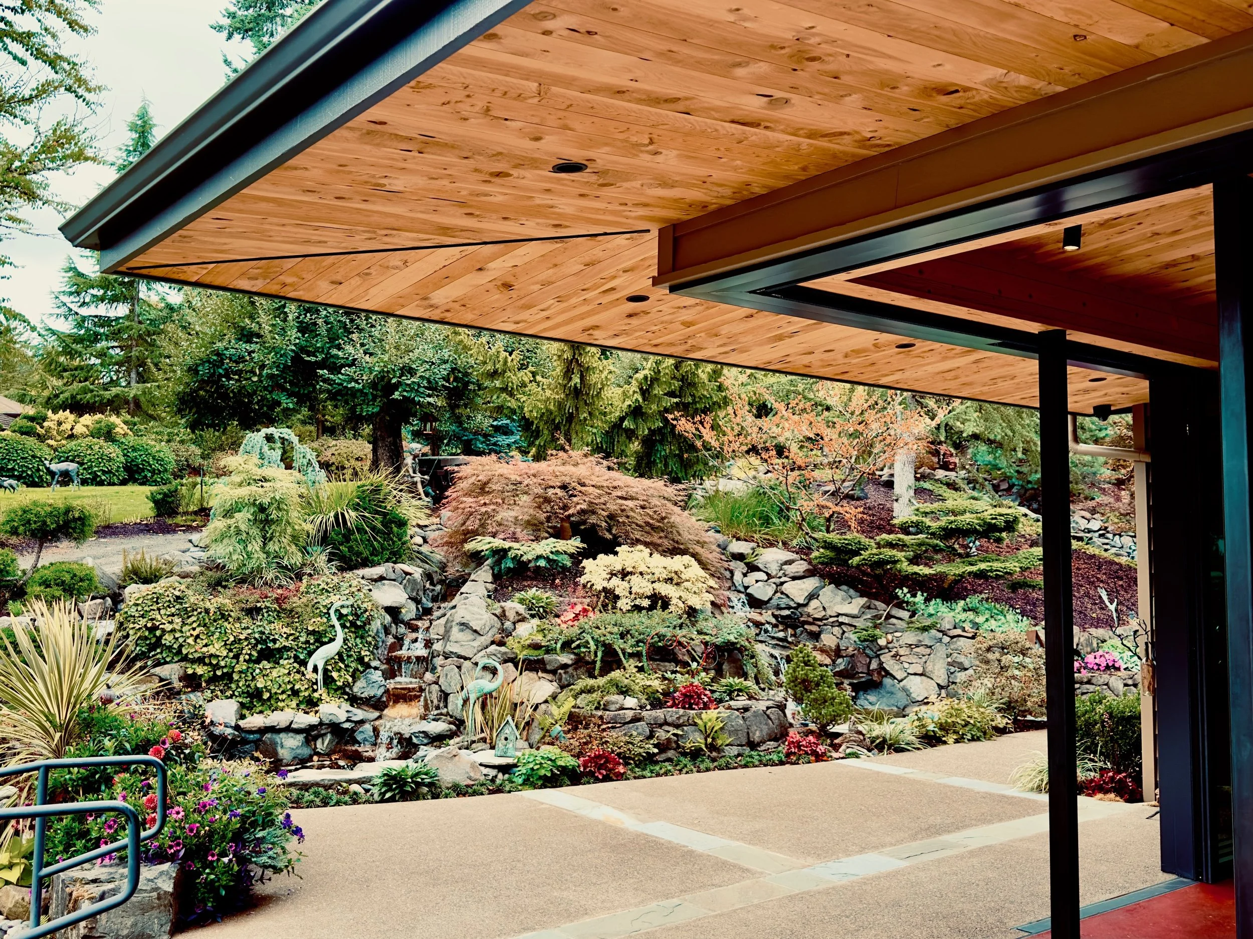 A desire for four-season living was the inspiration for this project: the clients wanted to be able to enjoy their lush garden year-round and host guests in a covered space while still enjoying the outdoors. Telescoping glass doors meet at an open corner made possible by offset steel columns, creating a seamless experience of the outdoors whether the room is open or closed. In cold or rainy weather, the lift-slide doors and a custom skylight bring in natural light and views of the garden; on warmer sunny days, the space becomes an extension of the outdoors. Sliding doors and an automated pass-through window allow easy flow from the living room and kitchen, while an integrated grill with a custom hood setup makes outdoor entertaining a breeze. The gravity-defying structure is balanced by a hand-troweled clay floor and locally-sourced wood cladding, finished with just a hint of color to increase durability and bring out its natural beauty.